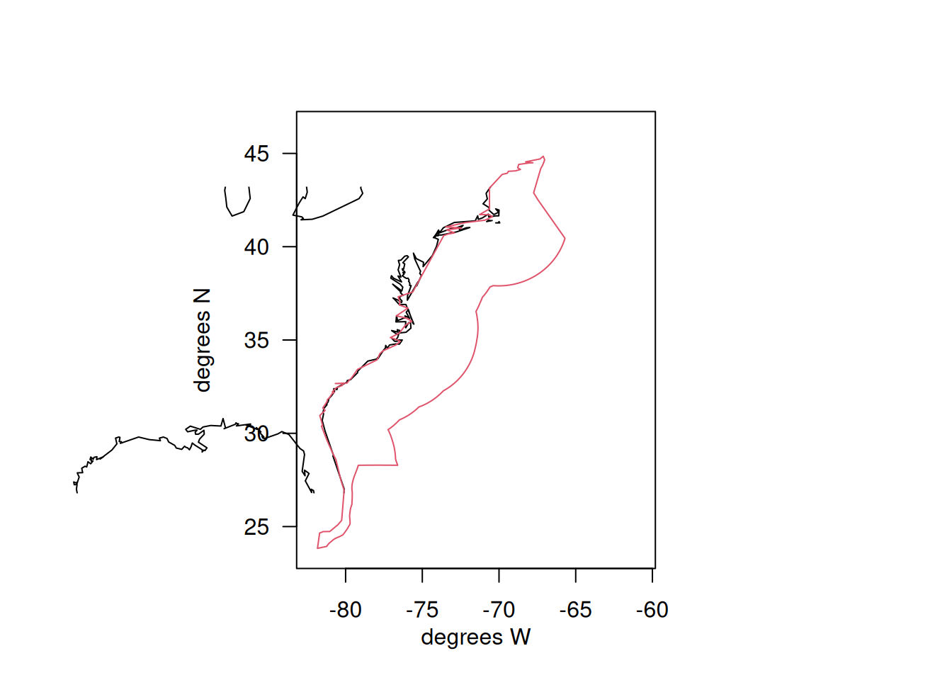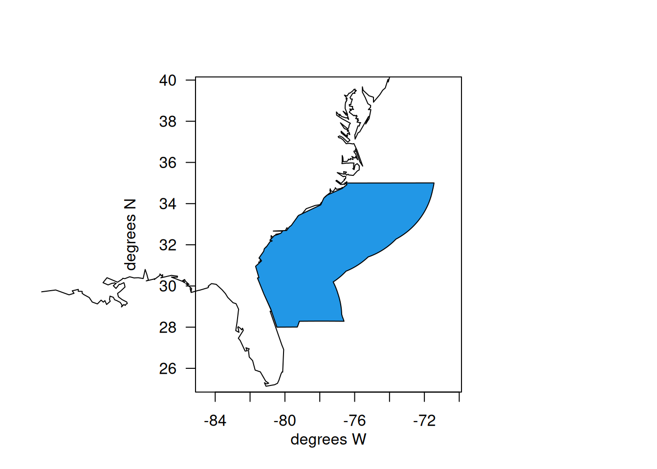Here is a final U.S. South Atlantic EEZ polygon, with a simplified coastline to reduce computational time when subsetting data points.
